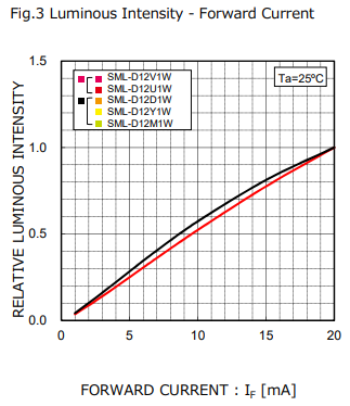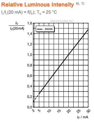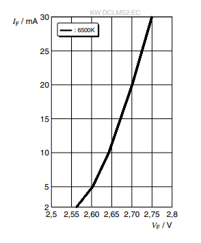 # White OSRAM LEDs, 20mA@2.7V, 5mA@2.6V, almost the same at 4mA