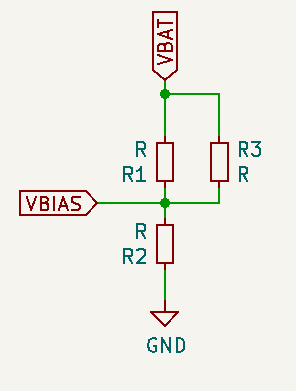 If \(R1 = R2\), \(Vbias = VDD/2\) . It’s easy to see how in that case, when the output is low, the feedback resistor pushes the threshold voltage (Vbias) up from whatever the R1 - R2 voltage divider would set by appearing in parallel to R1 (thus, decreasing its value and typing the balance towards R2). In the same way, when the output is high, by appearing in parallel to R2, it lowers Vbias.